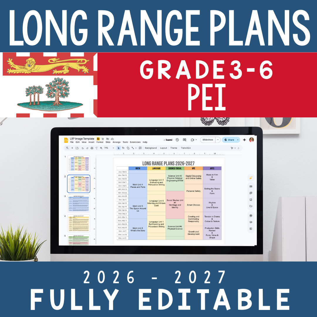 PEI teachers often have to adapt resources from larger provinces that don’t quite fit their curriculum. This long-range plan was built with PEI Grades 3–6 in mind, giving you a curriculum-aligned yearly framework that actually works for your classroom. Download the editable PowerPoint file and make it completely your own.